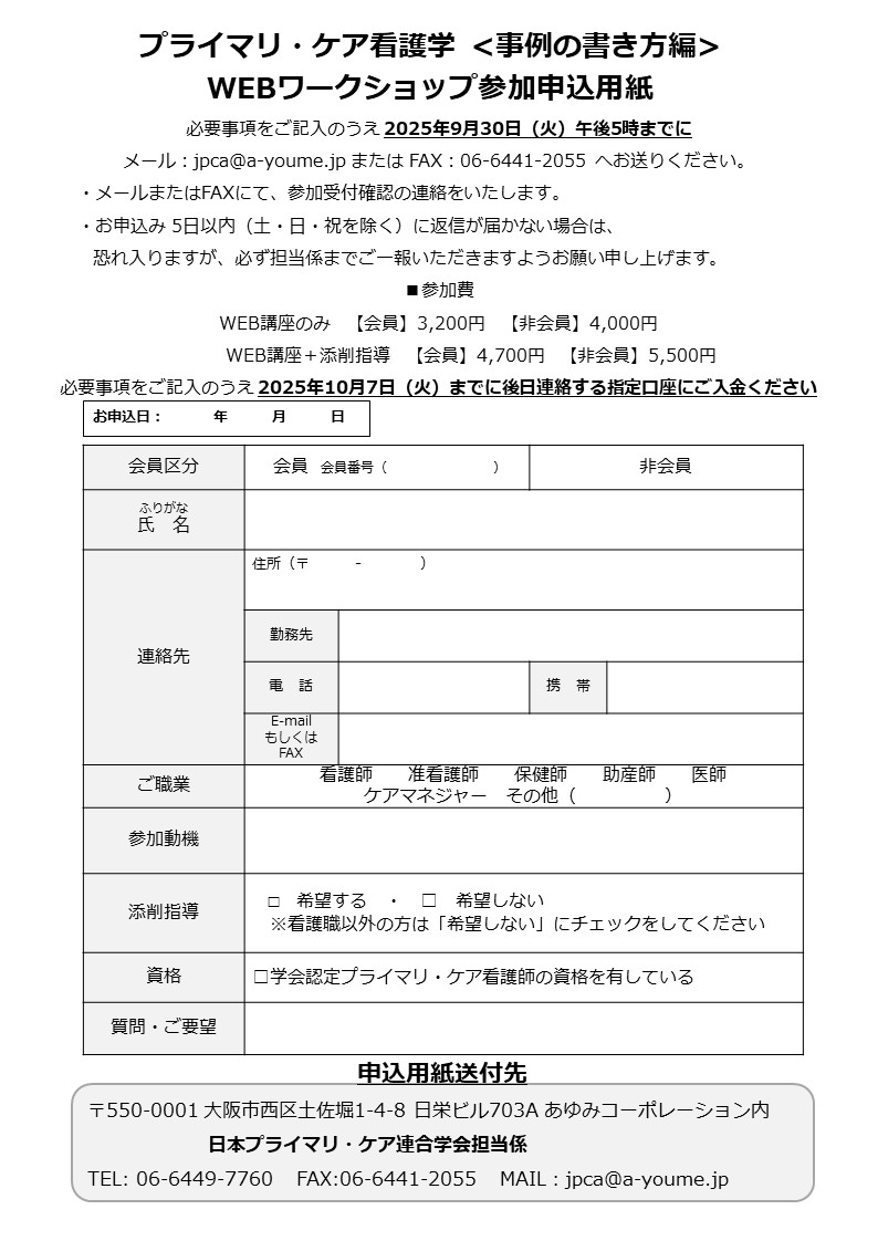 【申込受付中】プライマリ・ケア看護学WEBワークショップ<事例の書き方講座>