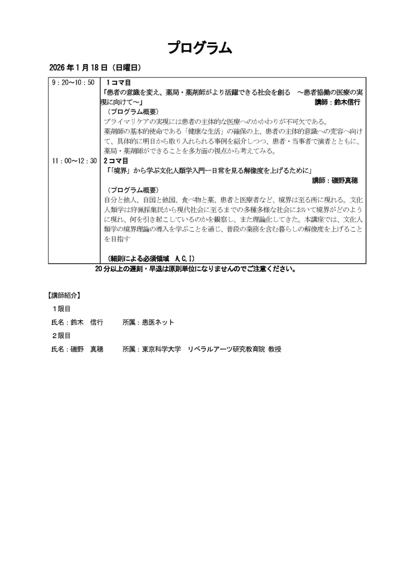 【2026年1月18日WEB開催】プライマリ・ケア認定薬剤師研修会のご案内(参加申込受付中!)