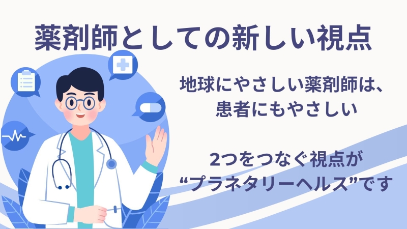 「プラネタリーヘルス」という新しい視点を採用することで、薬剤師は患者さんの健康だけでなく、地球の健康にも貢献する専門家として、その価値をさらに高めることができるでしょう 。