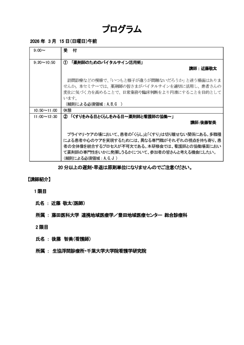 【2026年3月15日WEB開催】プライマリ・ケア認定薬剤師研修会のご案内(参加申込受付中!)