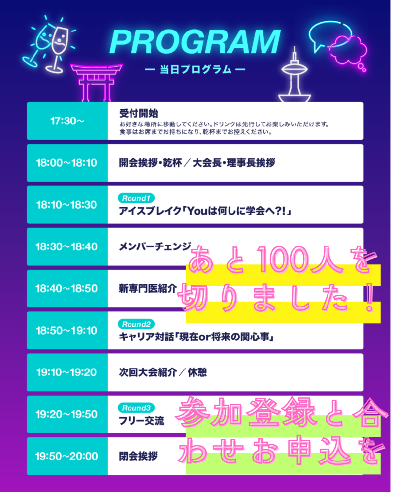 ホームニュース第17回日本プライマリ・ケア連合学会学術大会 2026<JPCA2026> JPCA2026懇親会=PCナイト、定員まであと100名を切りました!